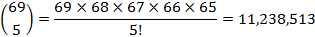 Solution: The number of possible outcomes of drawing 5 balls from 69 balls labeled from 1 to 69 is a combination. The number of combinations can be calculated as