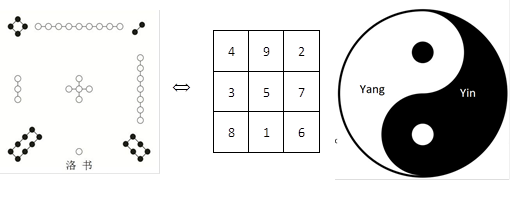 Figure 2‑2 Magic square and Yin-Yang chart from HetuLuoshu