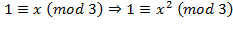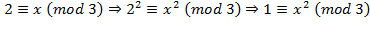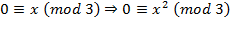 Let’s also try the route of using more modular rules. When we derived that the square of any odd number and 1 are congruent modulo 8, we used the remainder of a number divided by 8. If we divide a number x by 3, the remainder we get is 0, 1, or 2: